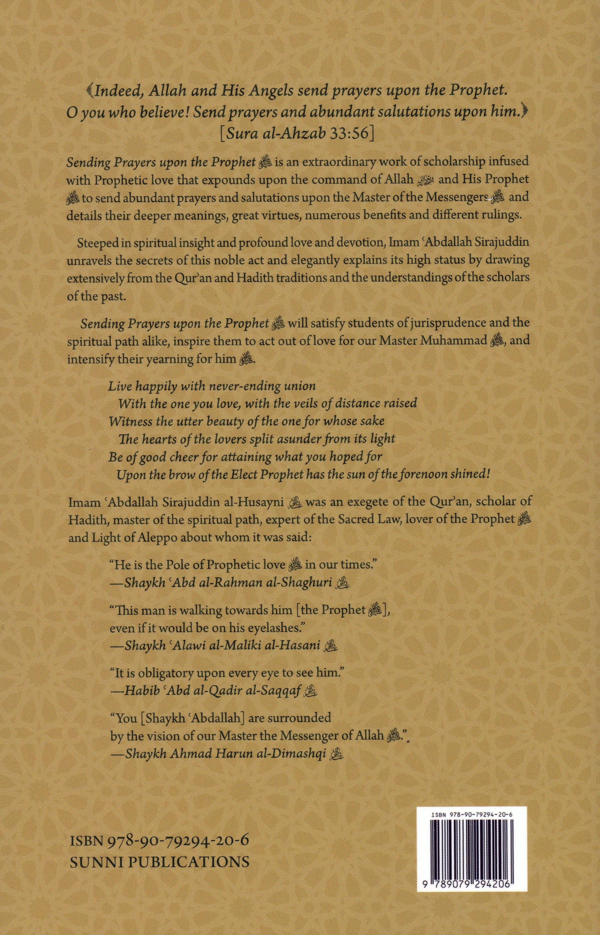 Sending Prayers upon the Prophet is an extraordinary work of scholarship infused with Prophetic love that expounds upon the command of Allah and His Prophet to send abundant prayers and salutations upon the Master of the Messengers and details their deeper meanings, great virtues, numerous benefits, and different rulings.