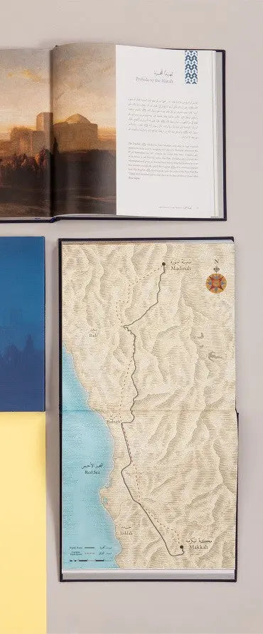 This Arabic and English book goes through the Prophet's (blessings and peace be upon him) Hijrah route in detail identifying landmarks and locations of where verses of the Qur'an were revealed. Using metallic inks and hand drawn maps it is tried to make this book look very special.