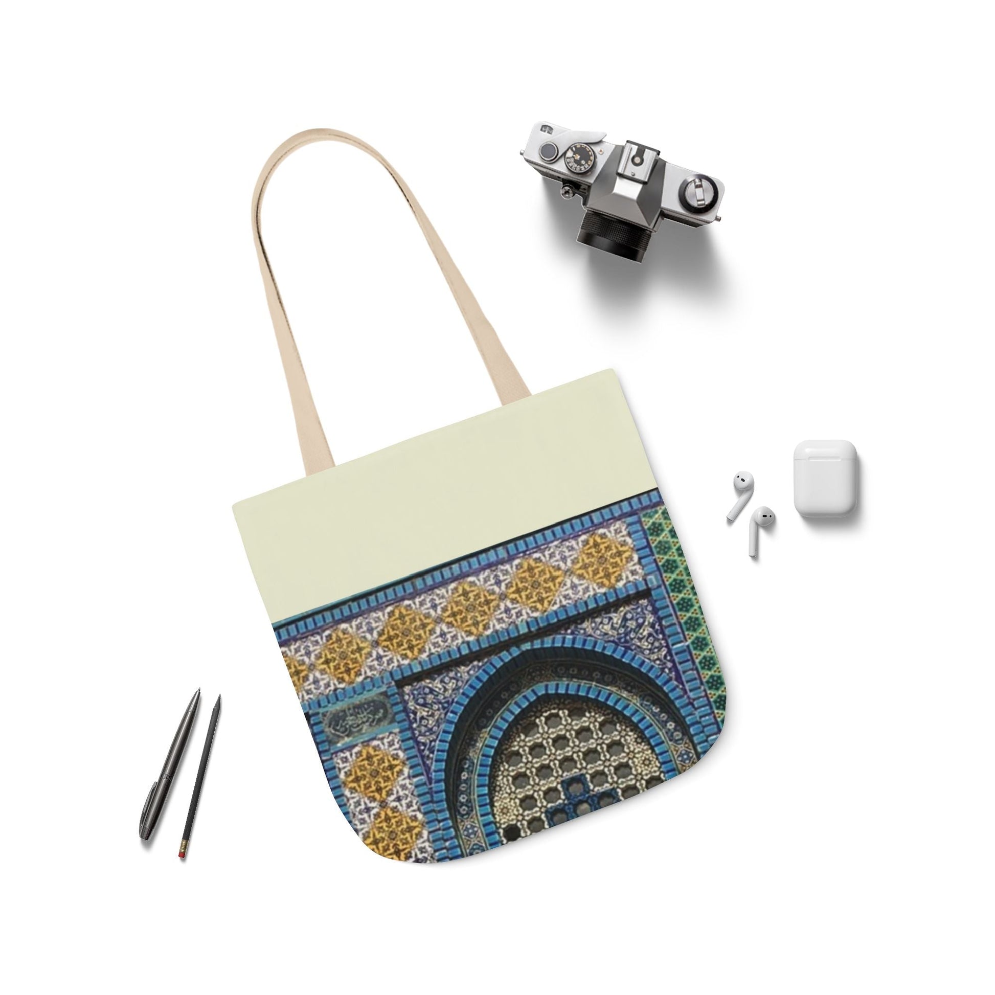 Lightweight, durable, and ideal for taking with you to the mosque, lectures, seminars, or retreats—this polyester canvas tote bag does it all. The inside has a sleek, black lining and its comfortable straps come in three beautiful colors. Choose any (or all) of the two sizes—put inside a notebook, your iPad, Sabha, prayer rug, and more! Ideal for quick errands, shopping trips, and longer travels.