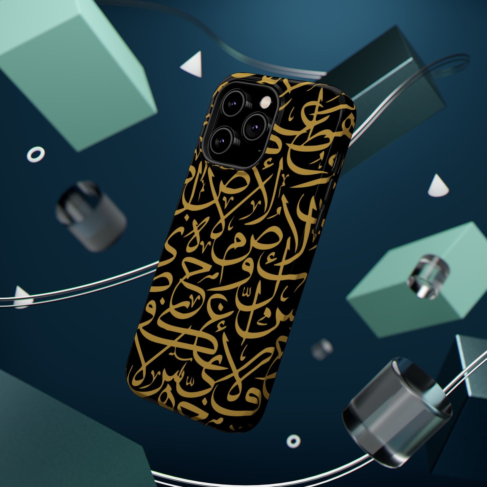 Arabic letters magnetic tough case is is to remind you of your identity. Equipped with an outer polycarbonate shell and inner black TPU lining, this case delivers robust protection thanks to its durable, flexible, impact-resistant nature. Available in a matte or glossy finish, each case comes with an embedded magnet module that is compatible with MagSafe® accessories and a stunning print that fully wraps around your case's exterior.