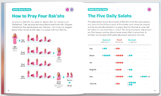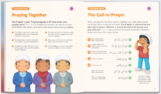 - All About the Prayer: The book also explains Wudu, the 5 daily Salah, the athan, prayer times and how to pray together.