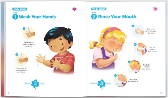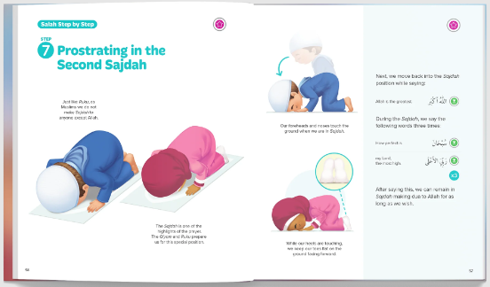 - Easy Steps: With clear steps and cute pictures, kids will learn exactly what to say and do during every step in Salah.