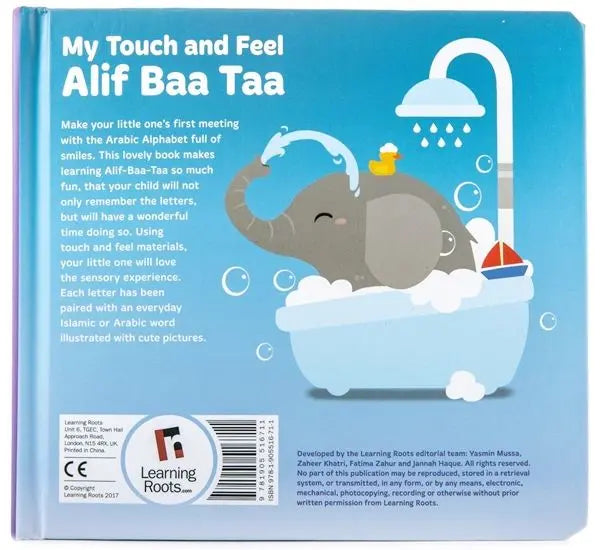 - My Touch and Feel Alif Baa Taa by Learning Roots is the world's first touchy-feely Islamic book produced in the English language for Muslim parents.