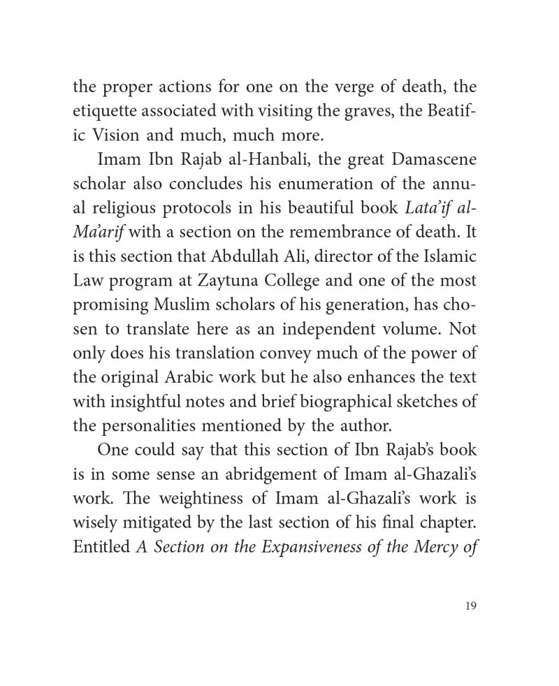 All things end including this world, but what is coming never ends. In remembering death as a daily practice, one is reminded to use each and every day successfully as a preparation for eternity. This wonderful work is an excellent place to start." - Hamza Yusuf, President of Zaytuna College