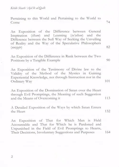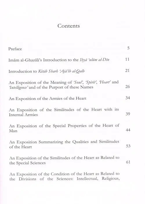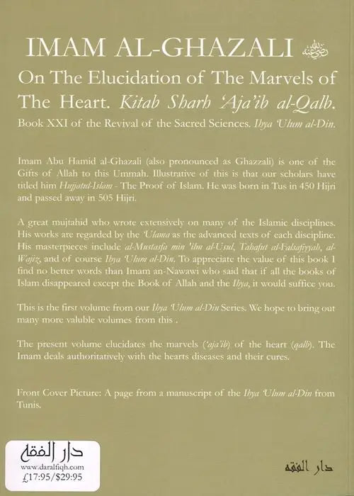The present volume elucidates the marvels ('Aja'ib) of the heart (Qalb). The Imam deals authoritatively with the hearts diseases and their cures. - Note From Publisher
