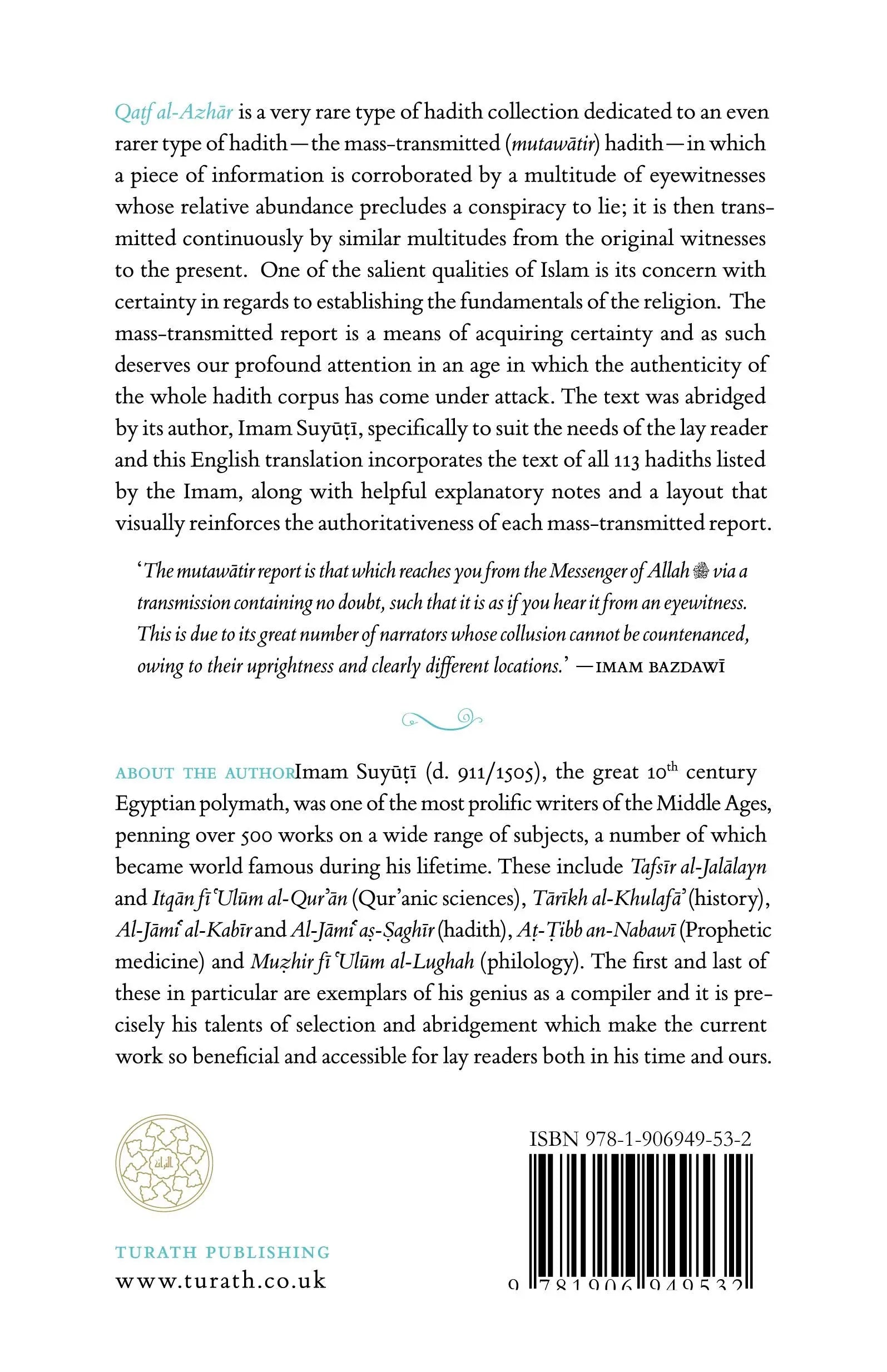 The text was abridged by its author, Imam Suyuti, specifically to suit the needs of the lay reader and this English translation incorporates the text of all 113 hadiths listed by the Imam, along with helpful explanatory notes and a layout that visually reinforces the authoritativeness of each mass-transmitted report.