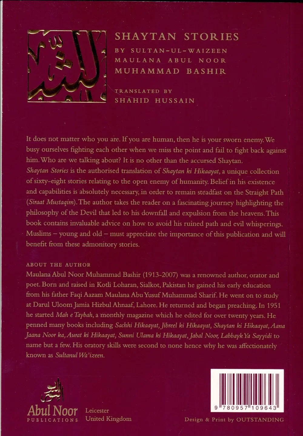 It does not matter who you are. If you are human, then he is your sworn enemy. We busy ourselves fighting each other when we miss the point and fail to fight back against him. Who are we talking about? It is no other than the accursed Shaytan. Shaytan Stories is the authorized translation of Shaytan ki Hikaayat, a unique collection of sixty-eight stories relating to the open enemy of humanity. Belief in his existence and capabilities is absolutely necessary, in order to remain steadfast on the Straight Path (Siraat Mustaqim).