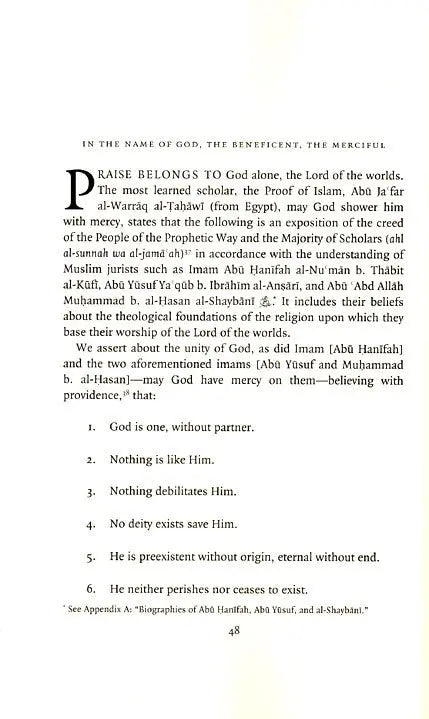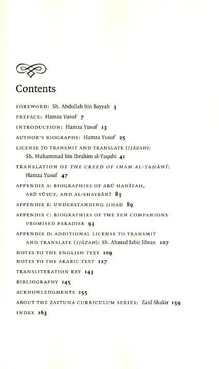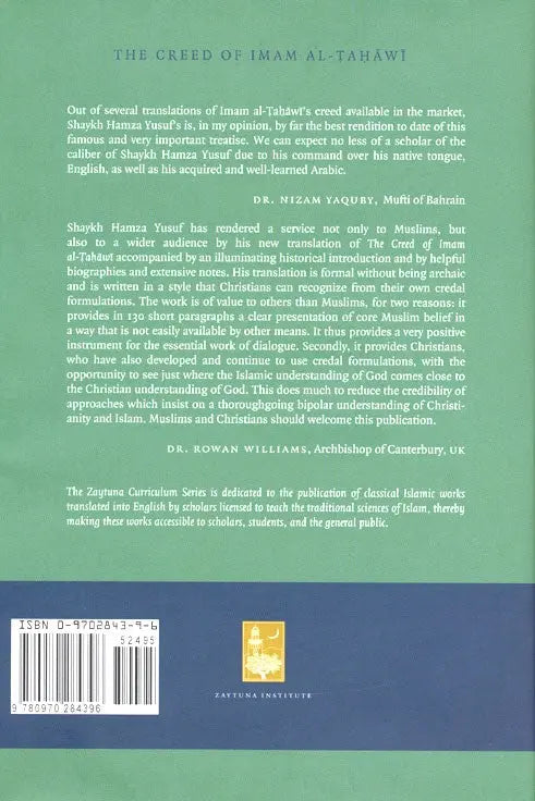 Hamza Yusuf's Creed of Imam al-Tahawi is an important contribution to scholarship and to Muslim self-understanding. This fluid and accurate translation provides access and insight into a major scholastic work that sets out core Islamic beliefs/doctrines. It will be welcomed by Muslim and non-Muslim readers alike.