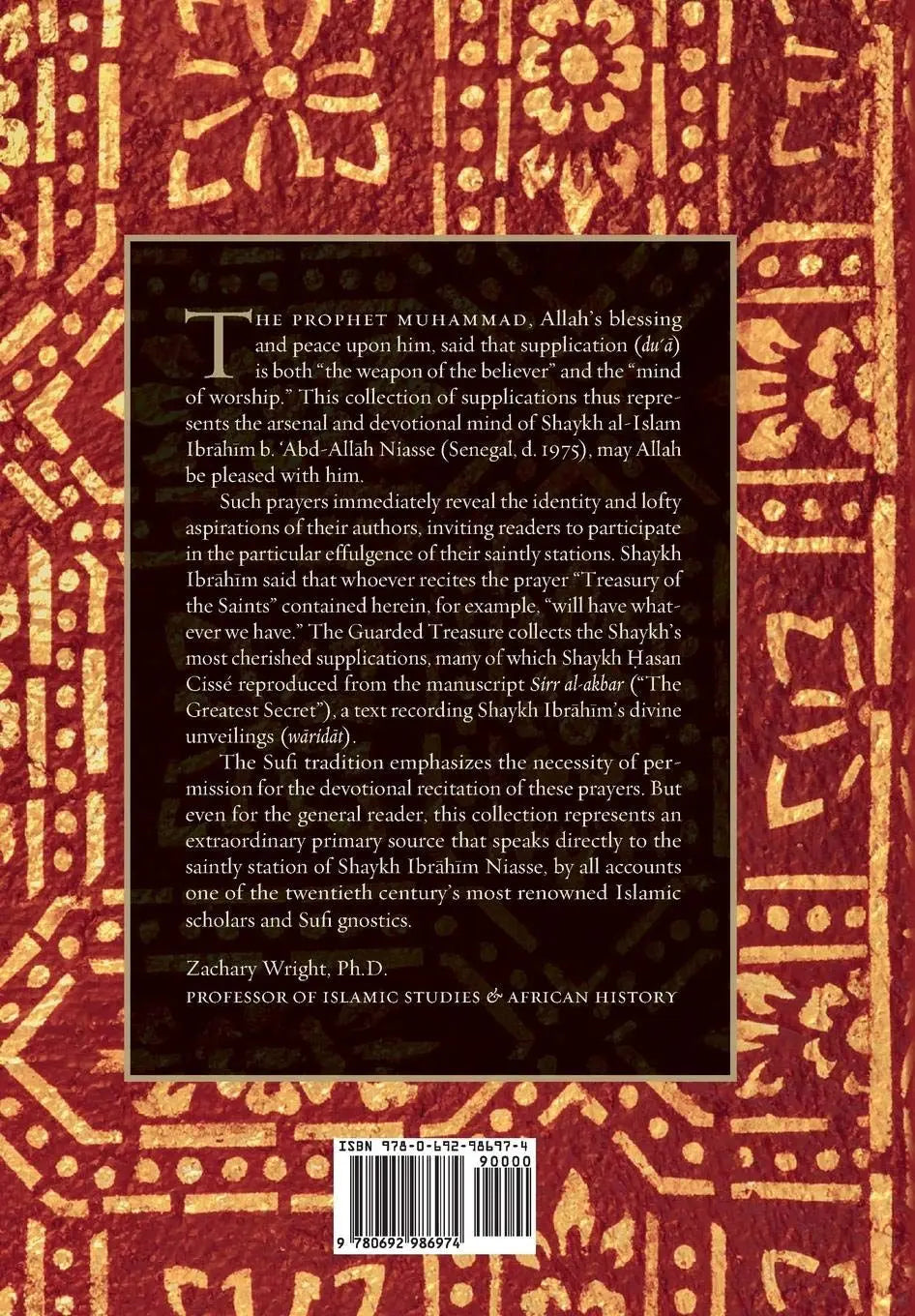 Such prayers immediately reveal the identity and lofty aspirations of their authors; inviting readers to participate in the particular effulgence of their saintly stations. Shaykh Ibrahim Niasse said that whoever recites the prayer "Treasury of the Saints" contained herein, for example. "will have whatever we have." The Guarded Treasure collects the Shaykh's most cherished supplications, many of which Shaykh Hasan Cisse reproduced from the manuscript Sirr al-Akbar ("The Greatest Secret"), a text recording Shaykh Ibrahim's divine unveilings (Waridat).