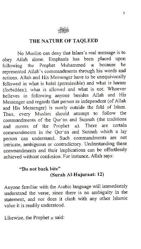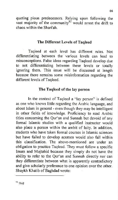 - The taqlid of an Individual and Following one's Whims and Fancies,