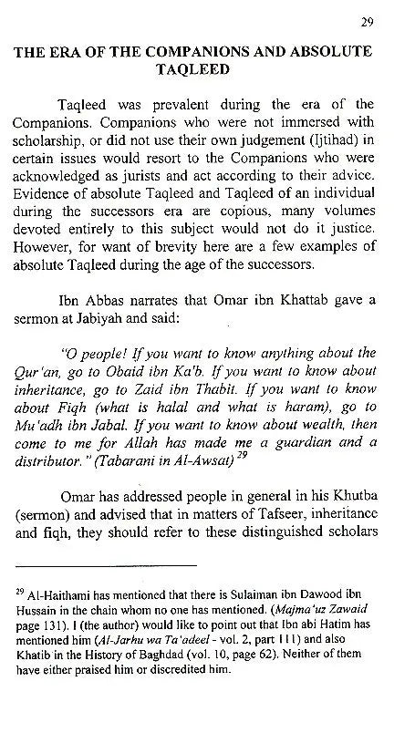 - taqlid of an Individual during the Time of the Companions and their Followers,
